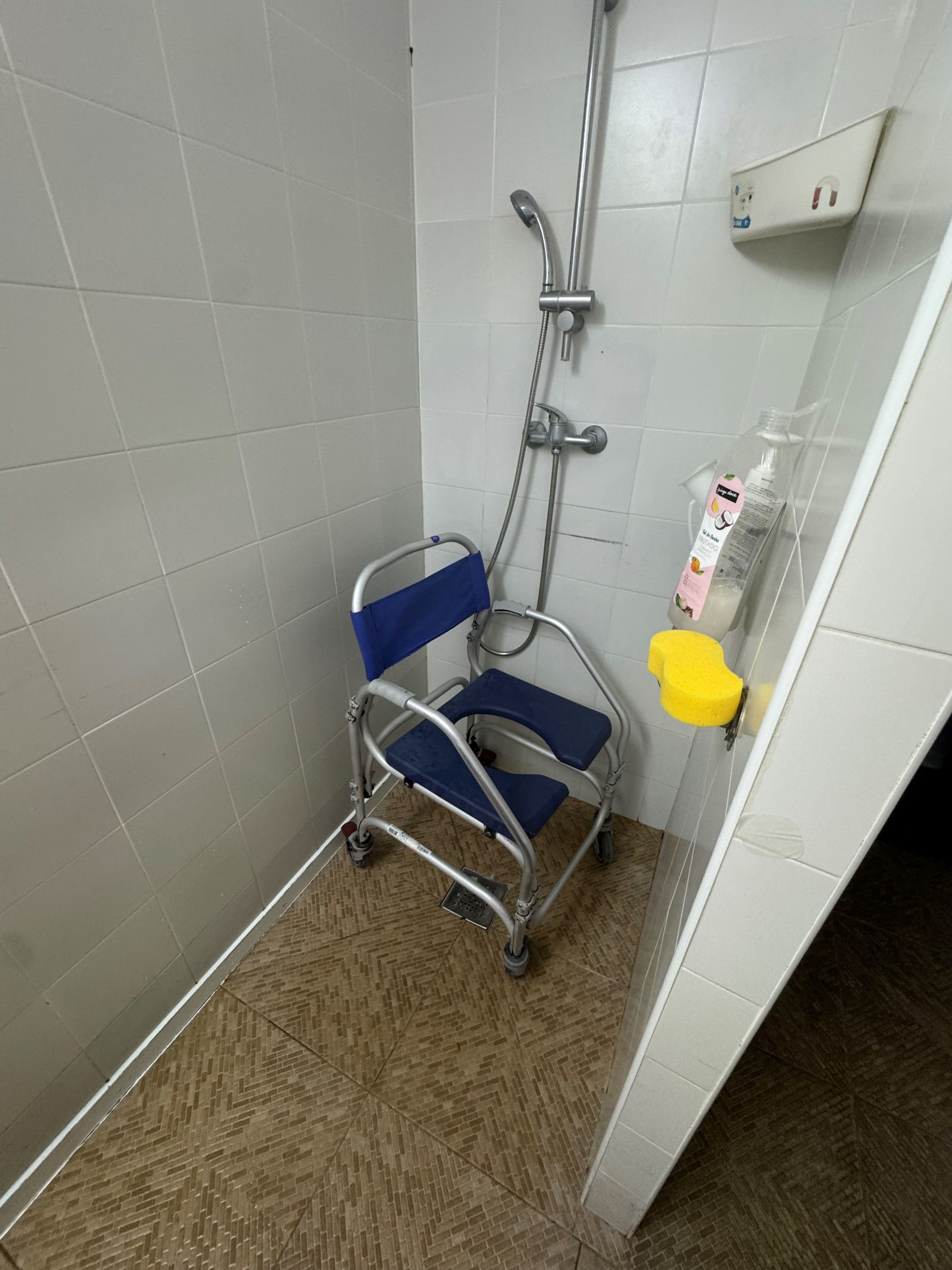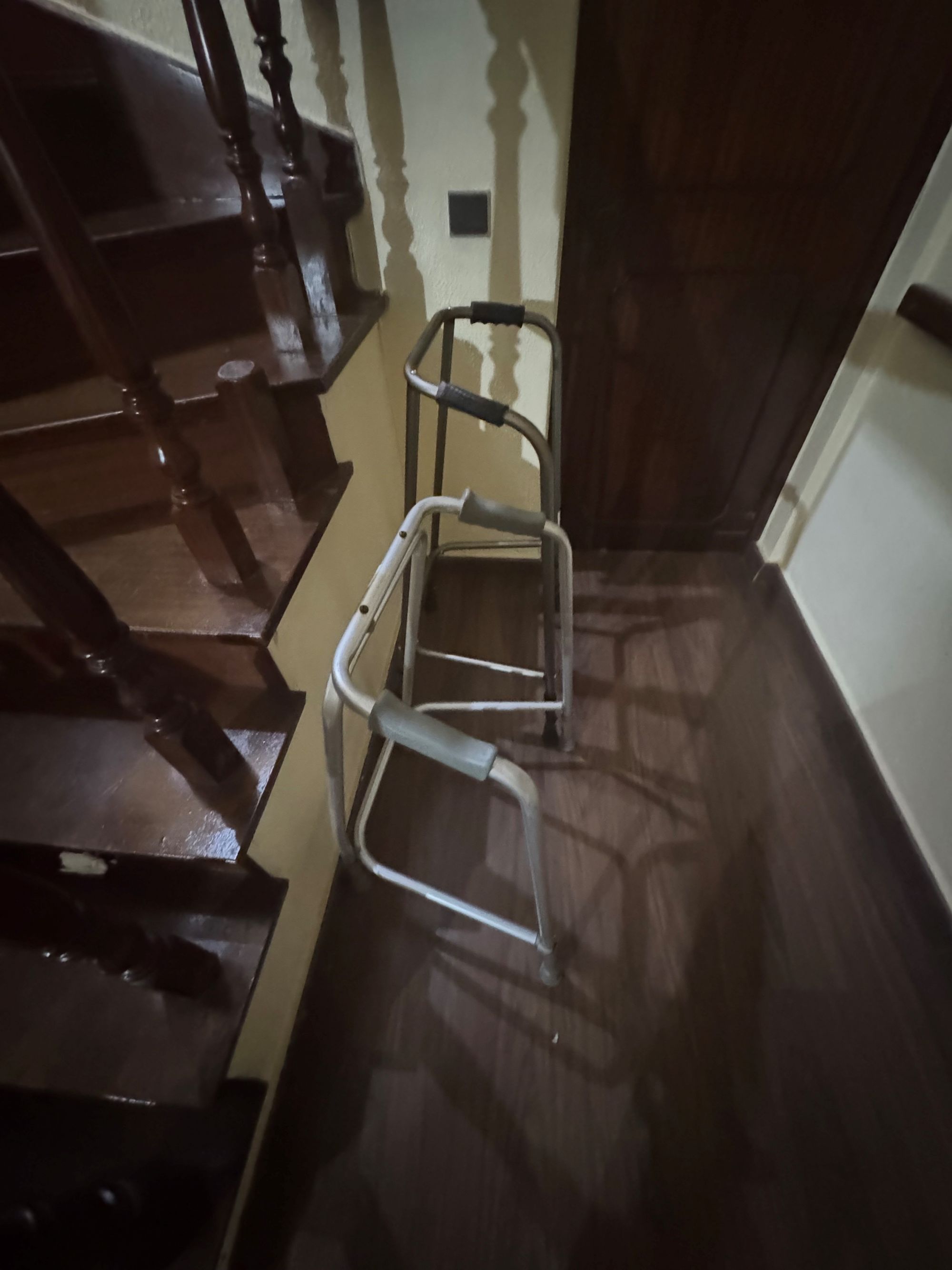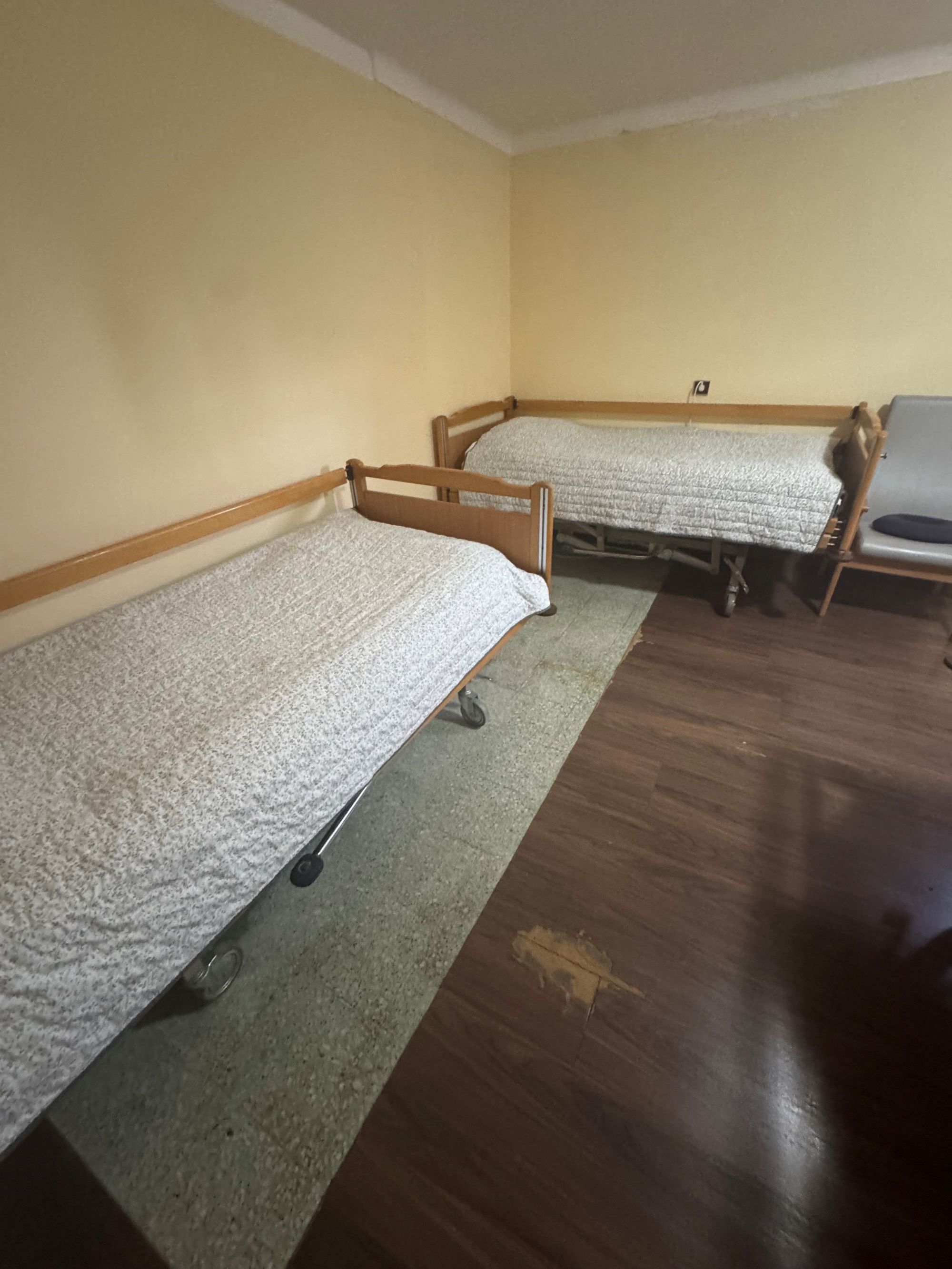2 camas, 2 mesinhas de cabeceira, cadeira, andarilho e roupeiro |