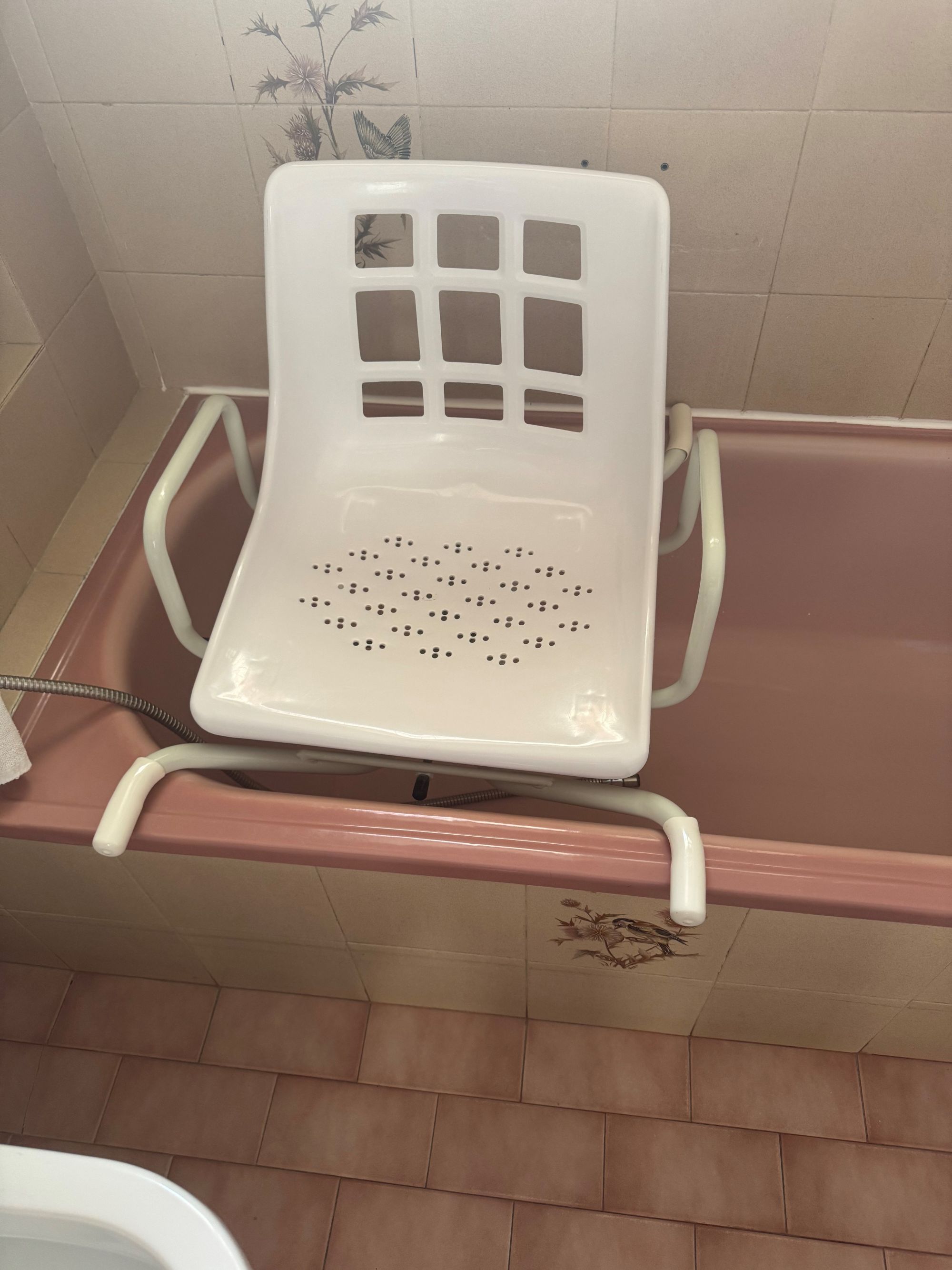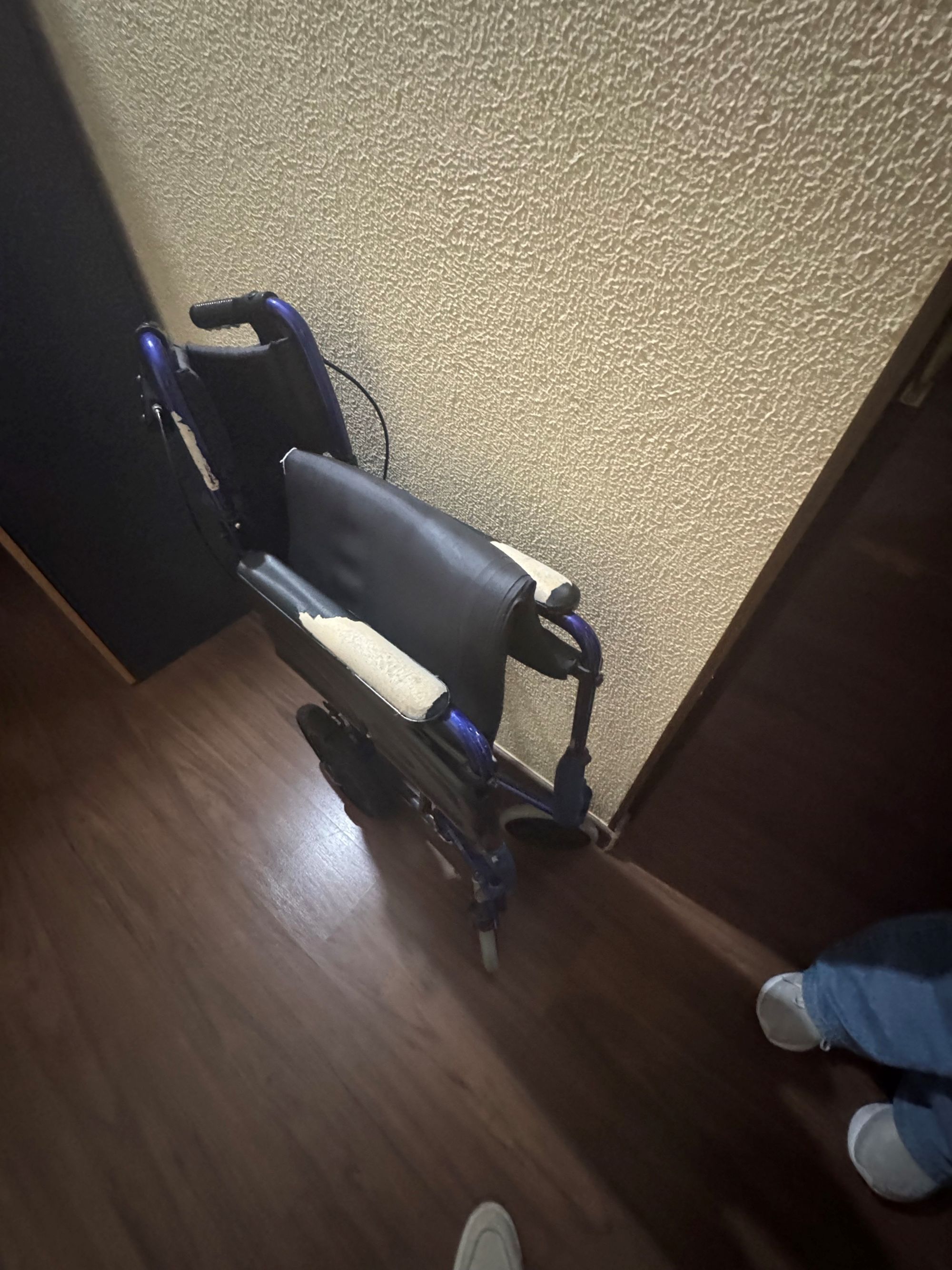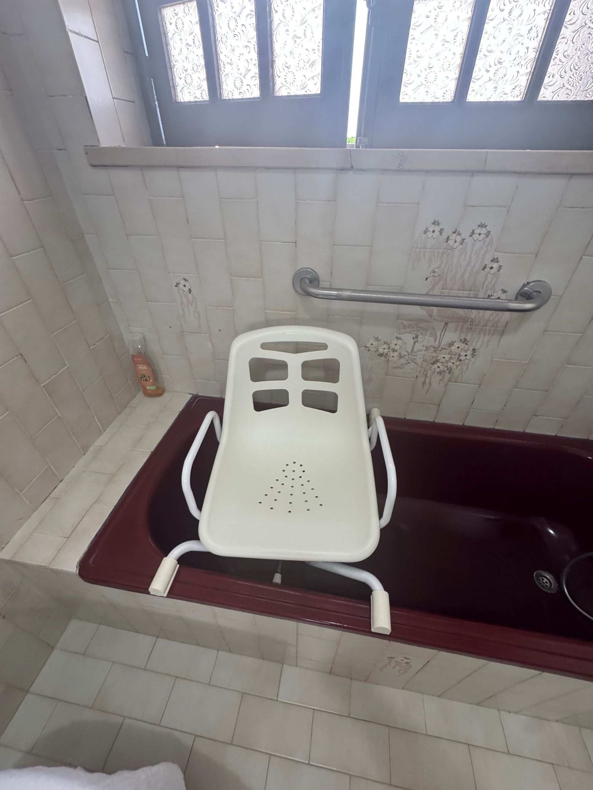 2 camas, 2 mesinhas de cabeceira, cadeira, andarilho e roupeiro |