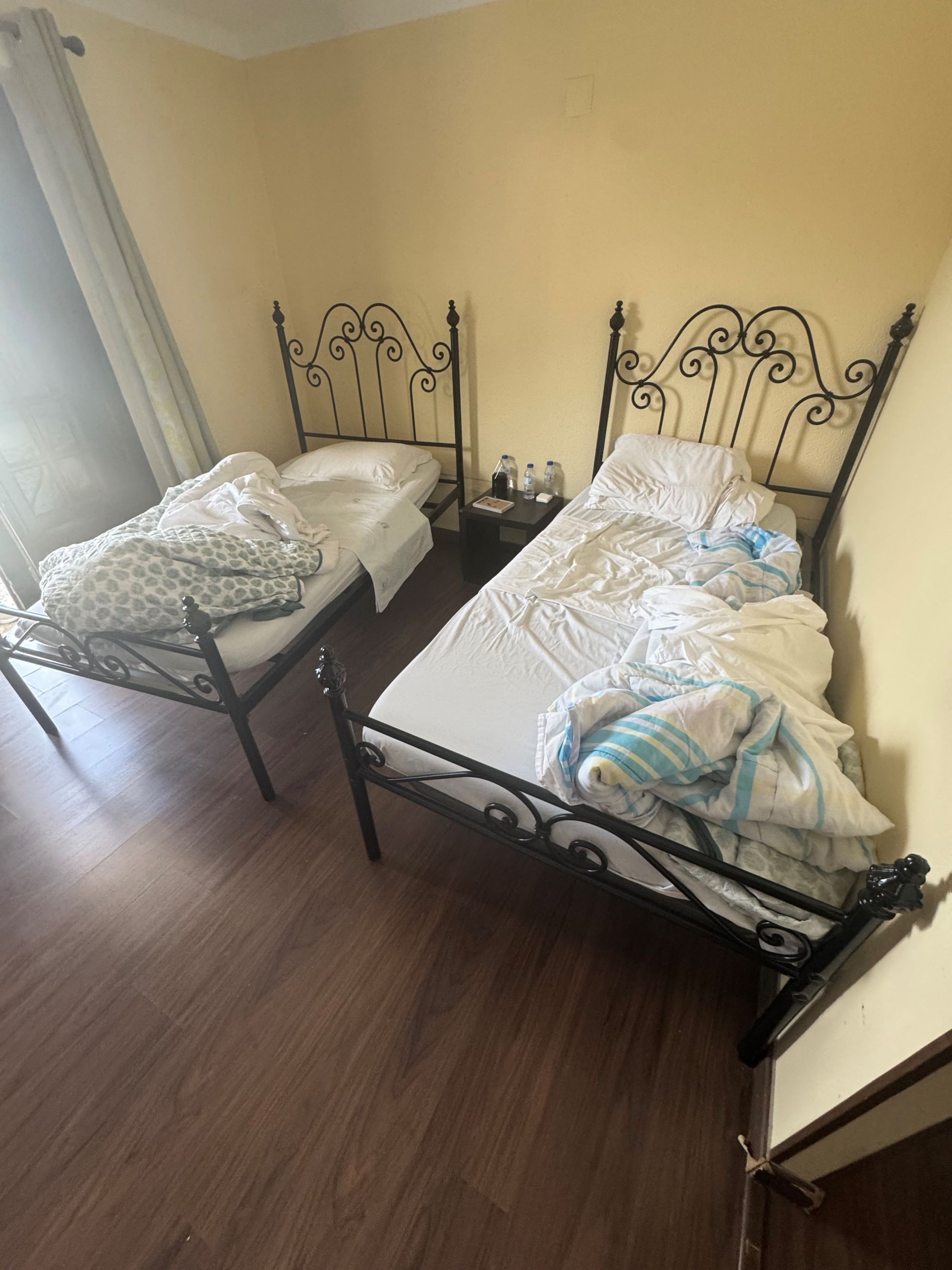 Quarto 1 - cama articulada e cama normal, mesinha de cabeceira e roupeiro |