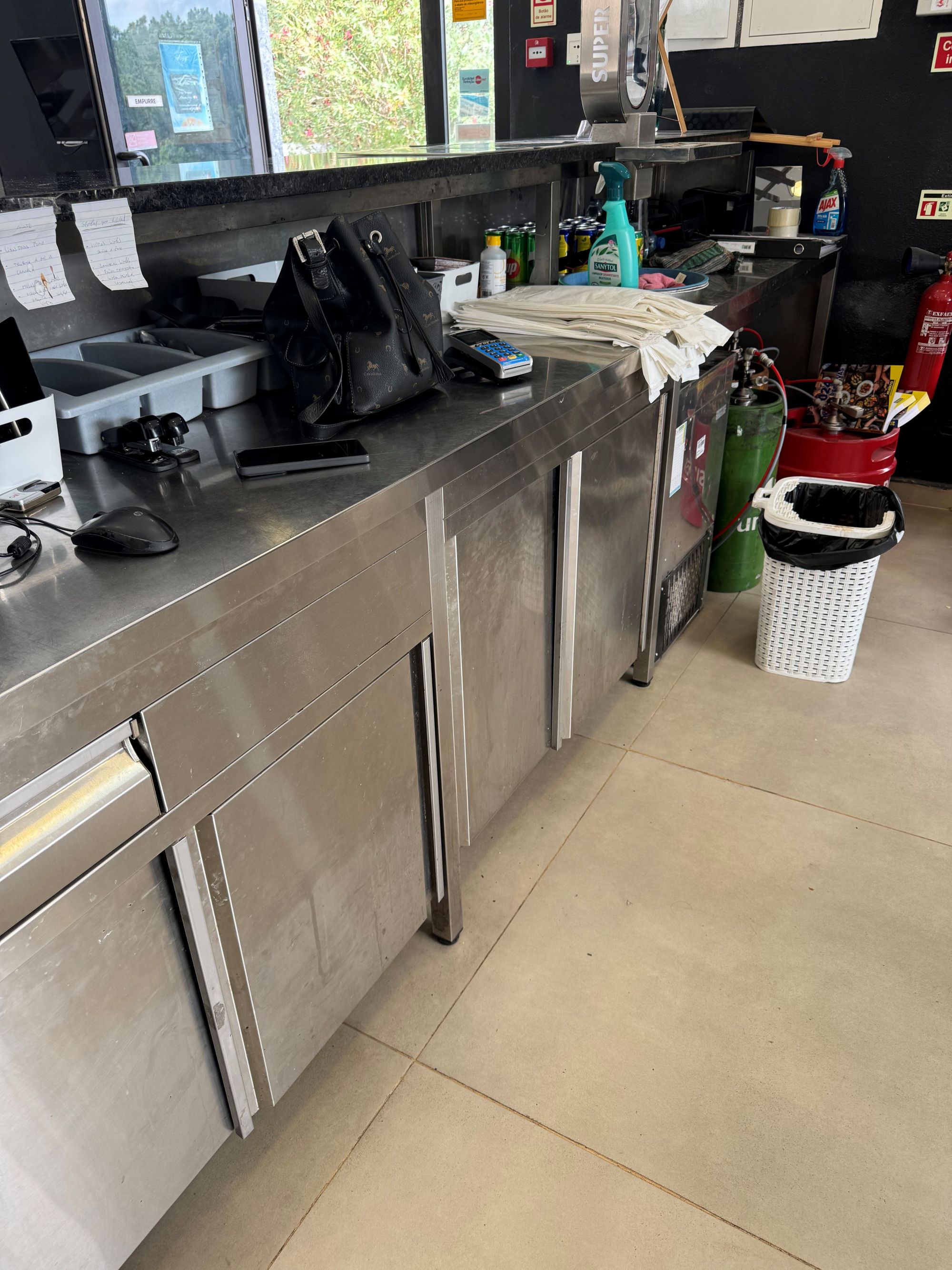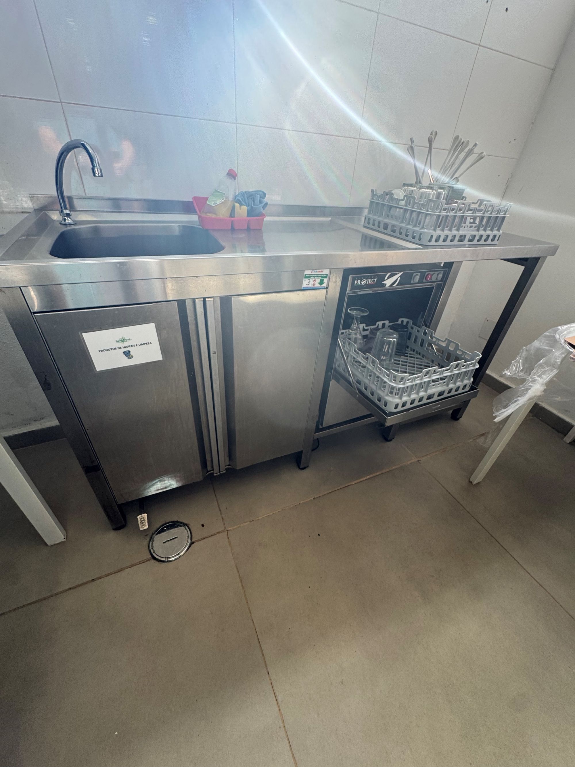 Bancada com uma Cuba, 2 portas e máquina de lavar copos |