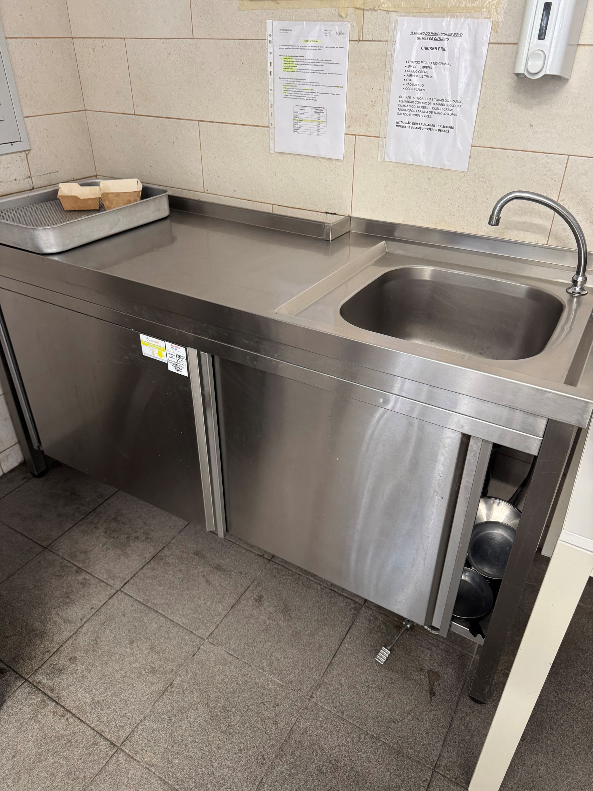 Bancada com uma Cuba e duas portas de correr em inox |