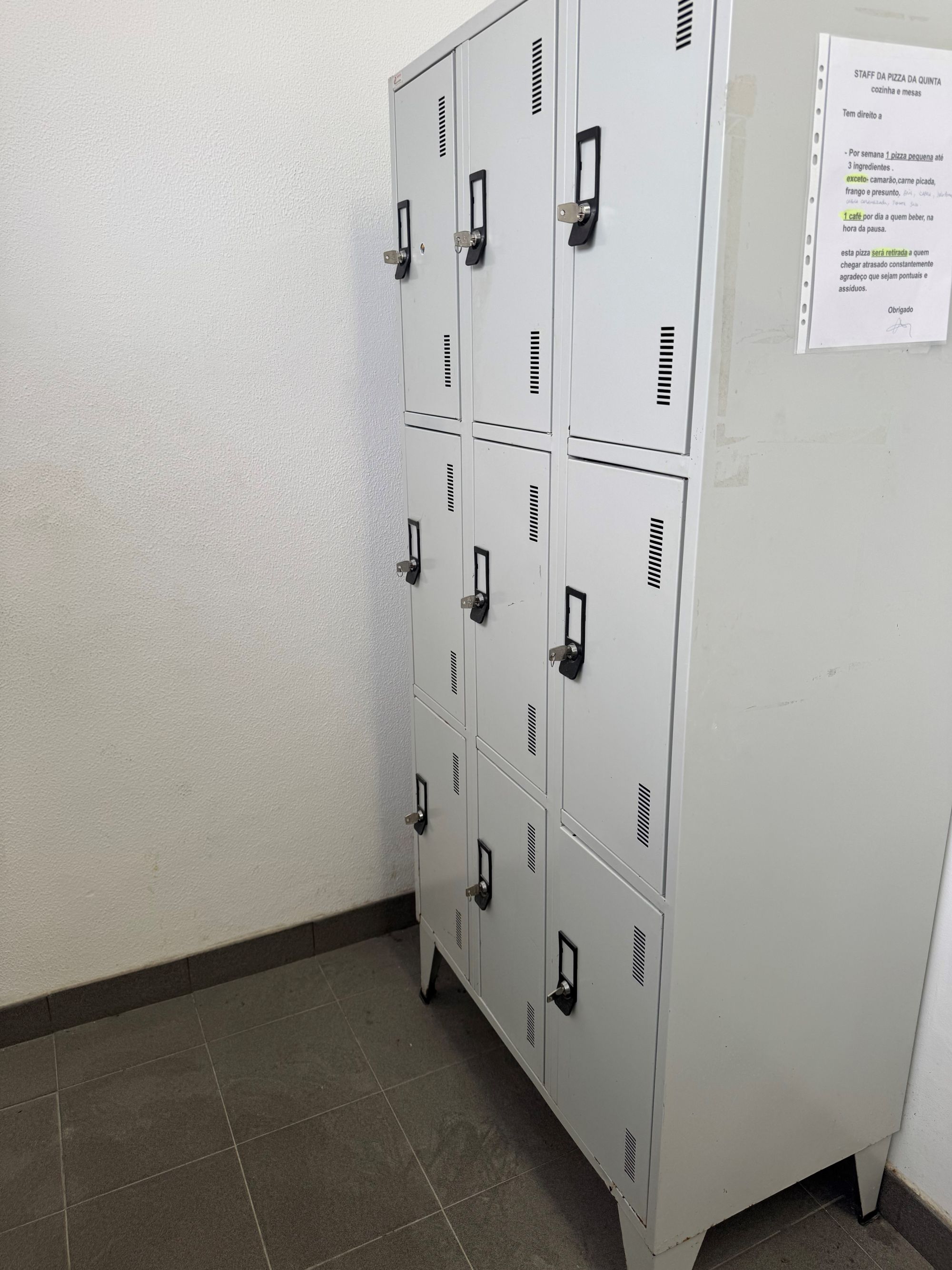 Vestiários com 9 cacifos |