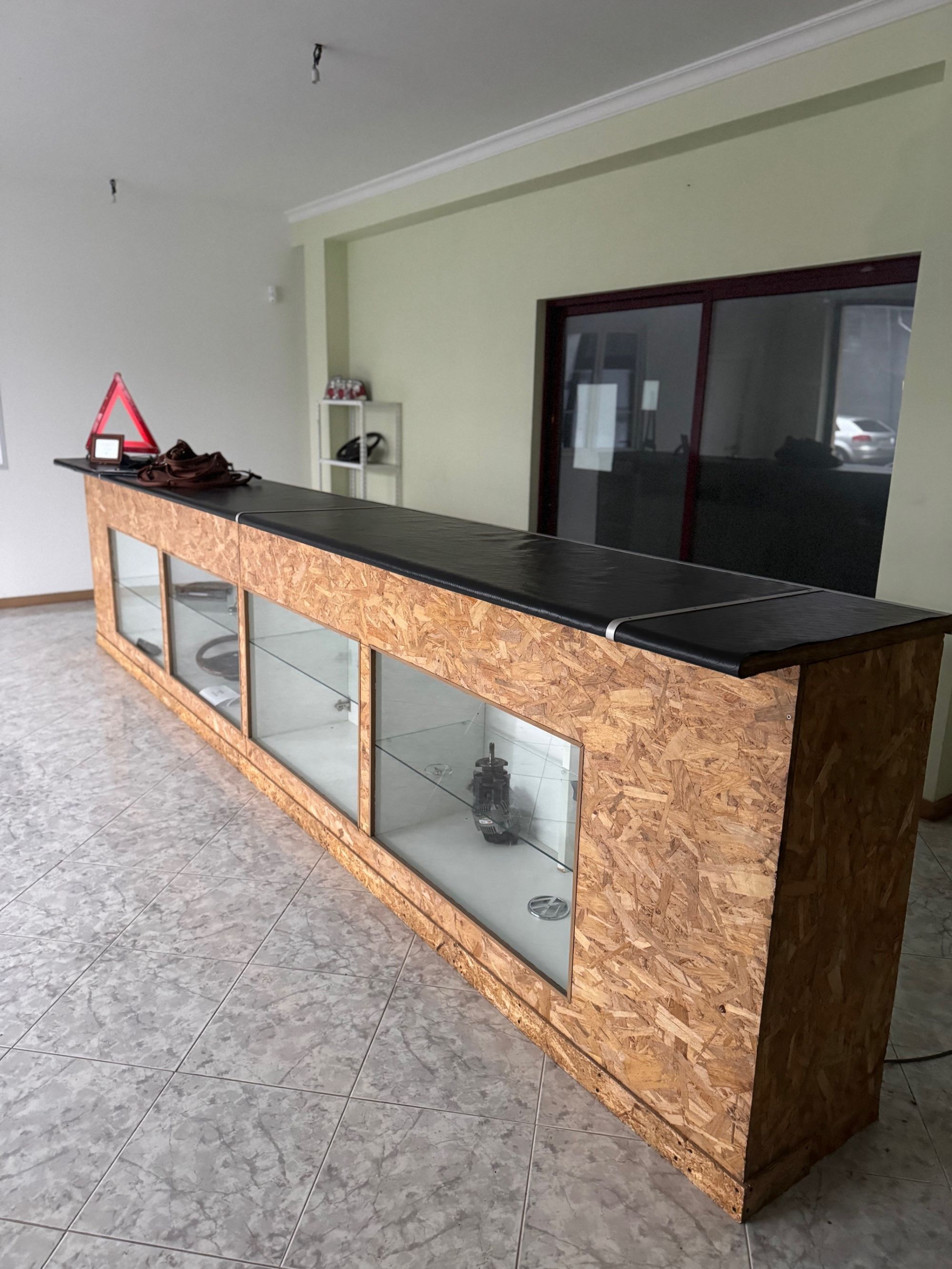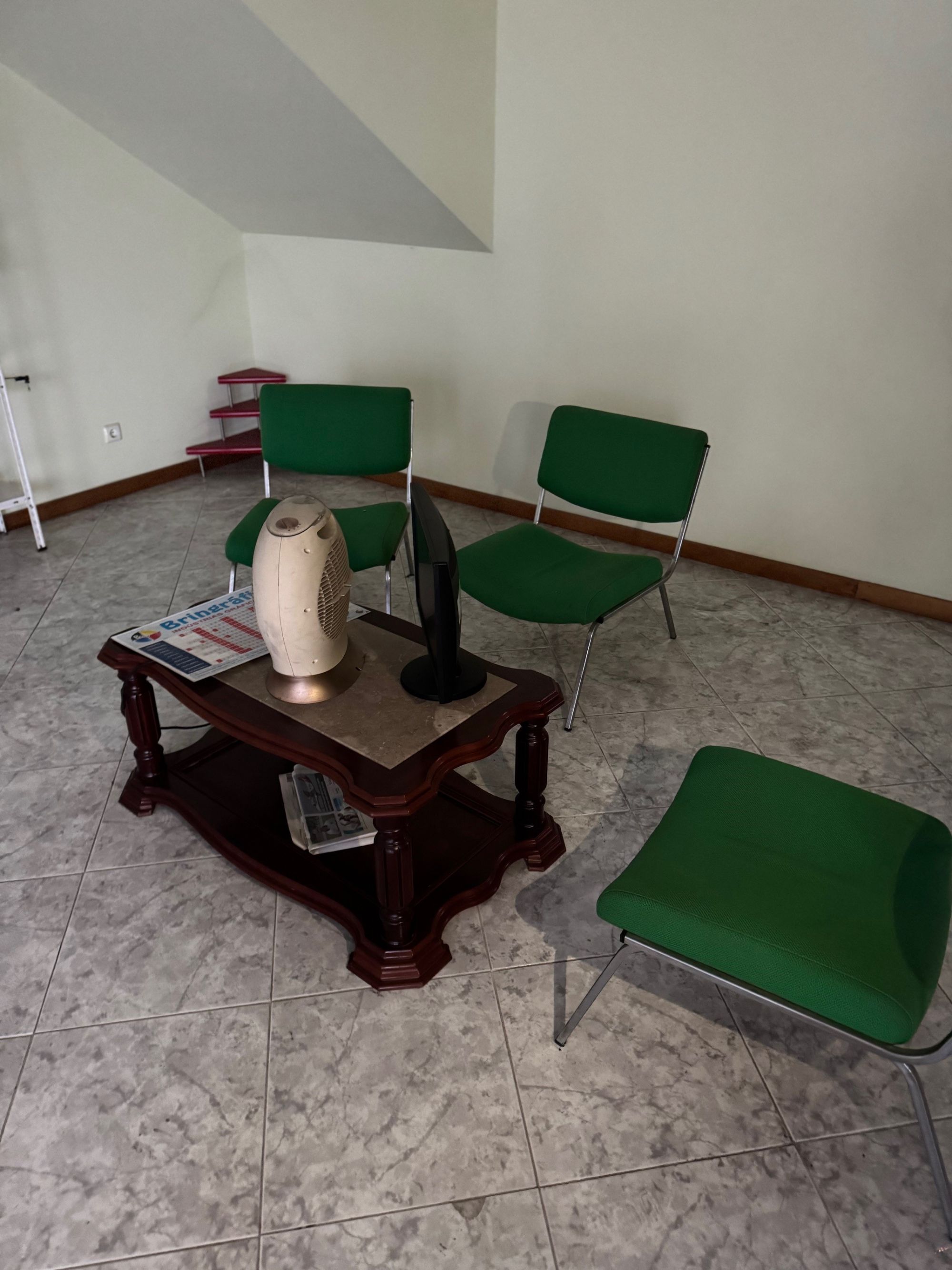 3 Cadeiras, Mesa de centro, Ventilador, Monitor, Balção de atendimento e 2 Secretárias |