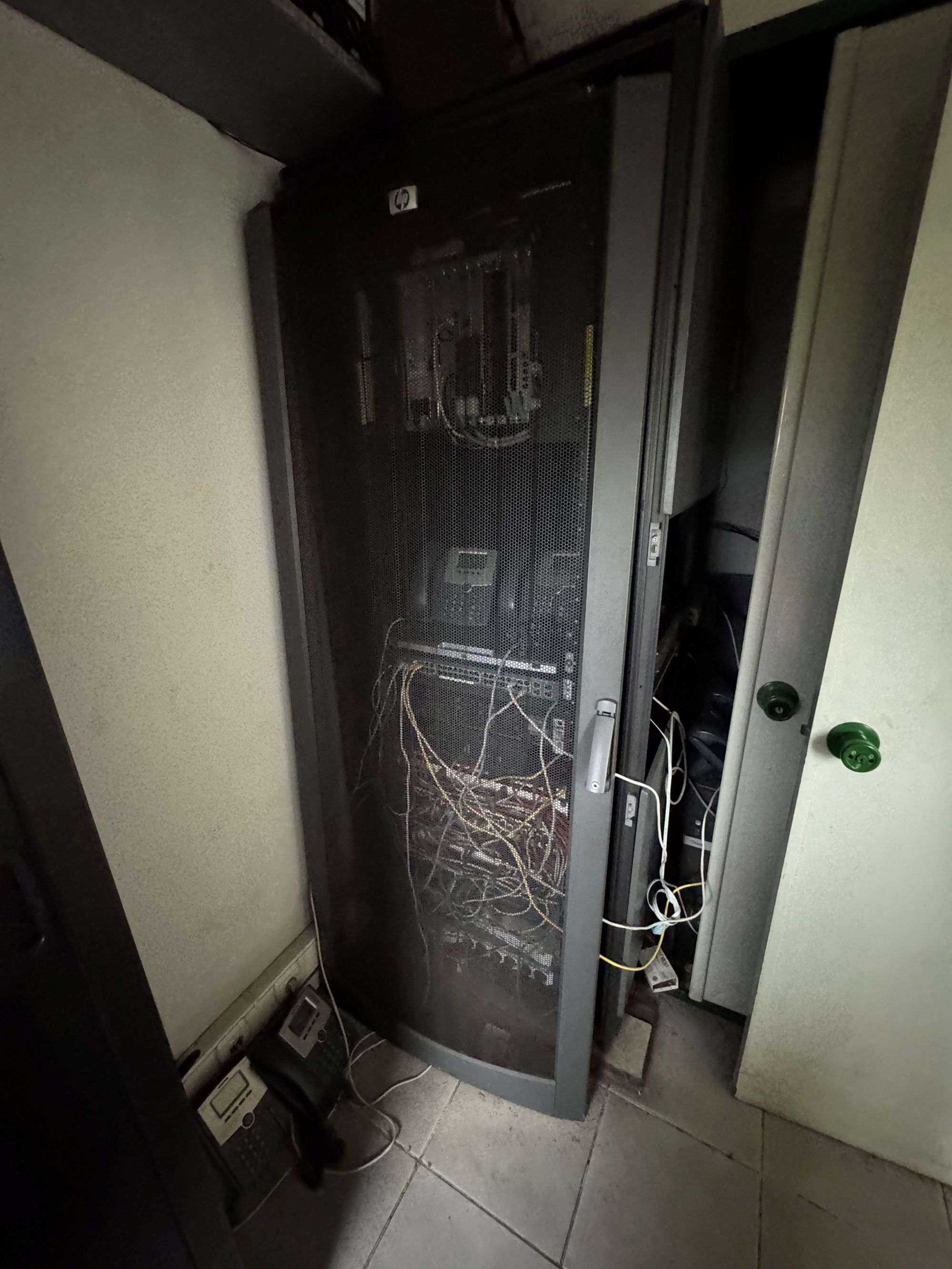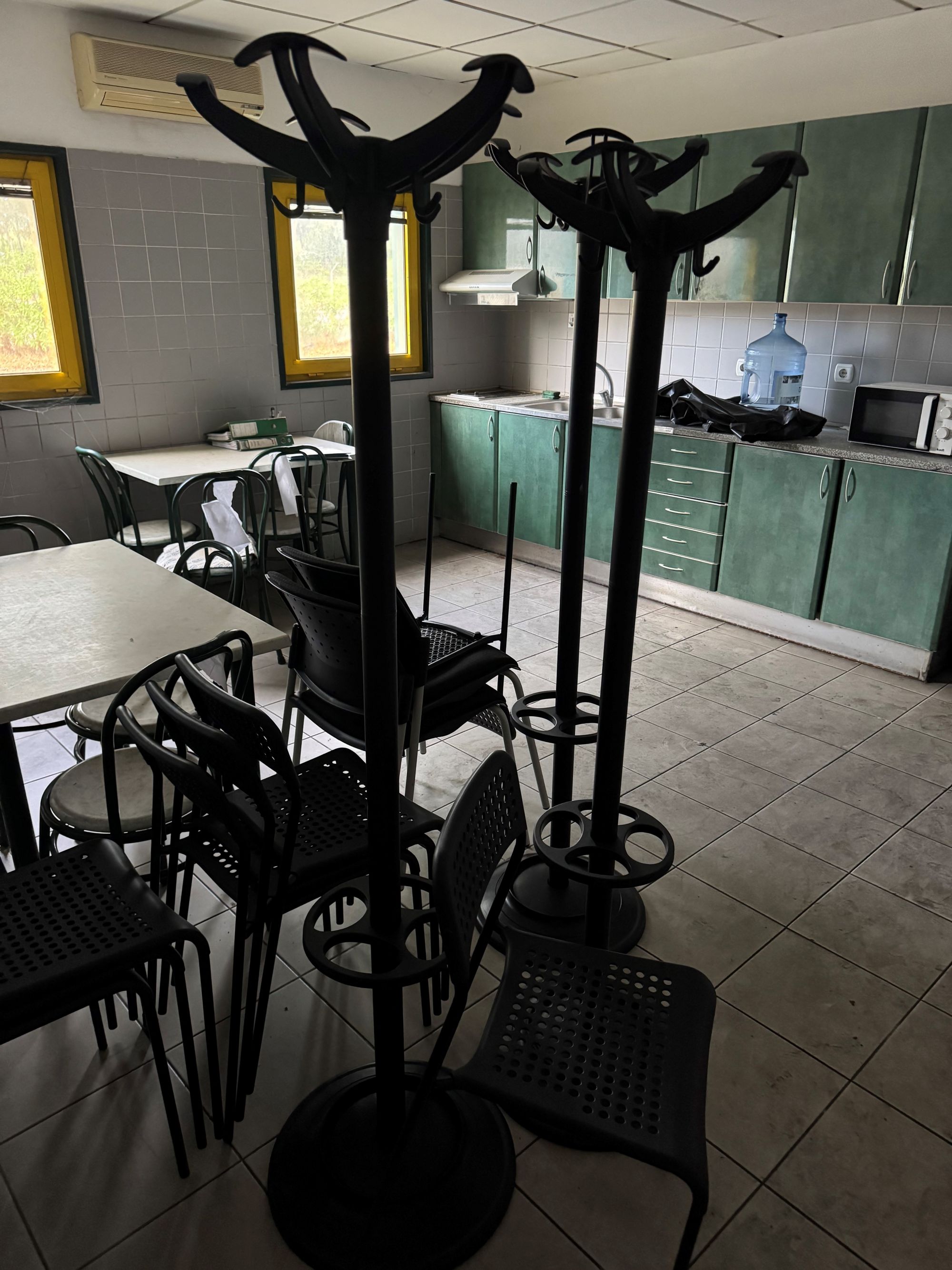 3 secretarias, 3 cadeiras e, 2 computadores monitores e teclados, 2 armários, 2 blocos de gavetas, bengaleiro |