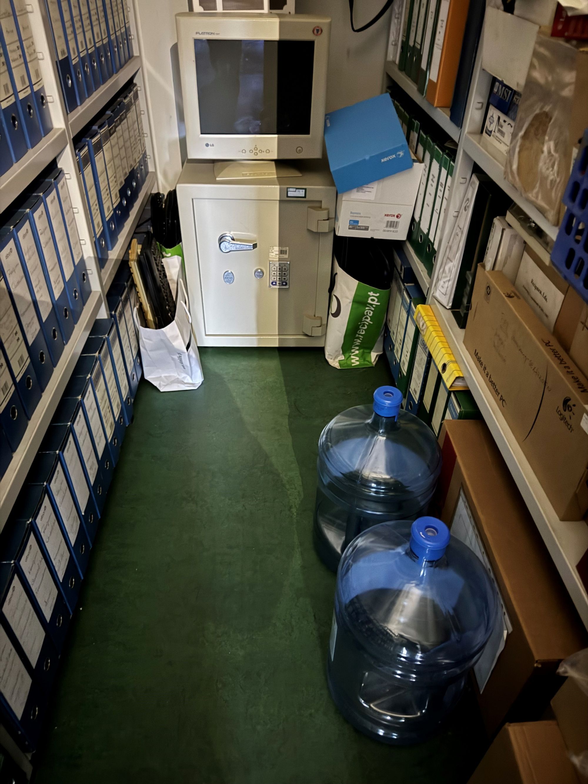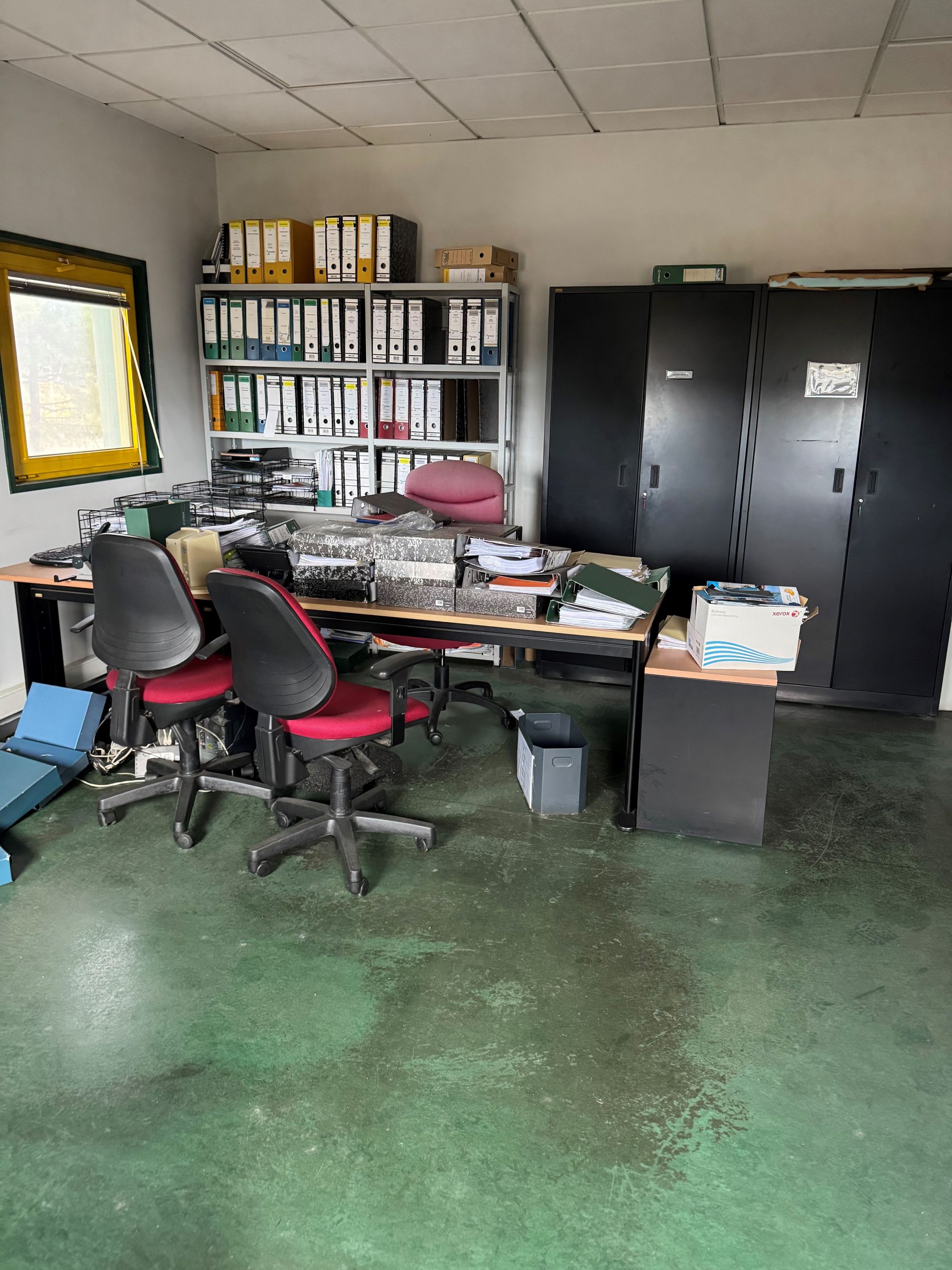 Secretaria, 3 cadeiras, 2 armários altos, armário baixo, 2 blocos de gavetas e sucata informática |
