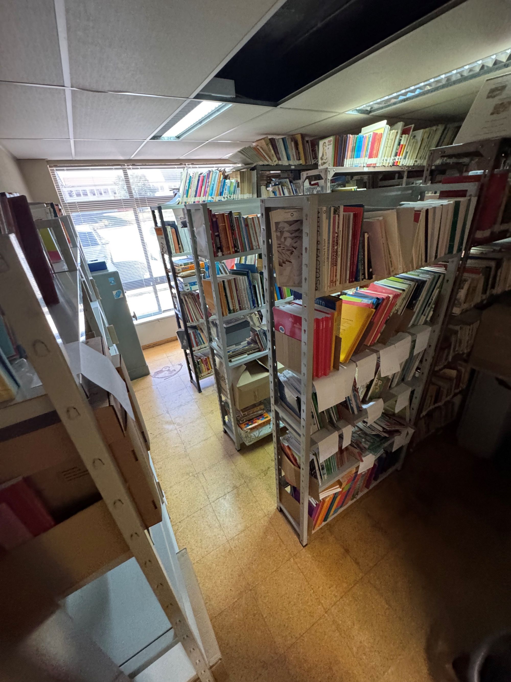Biblioteca: Arquivo de livros escolares com diversas estantes |