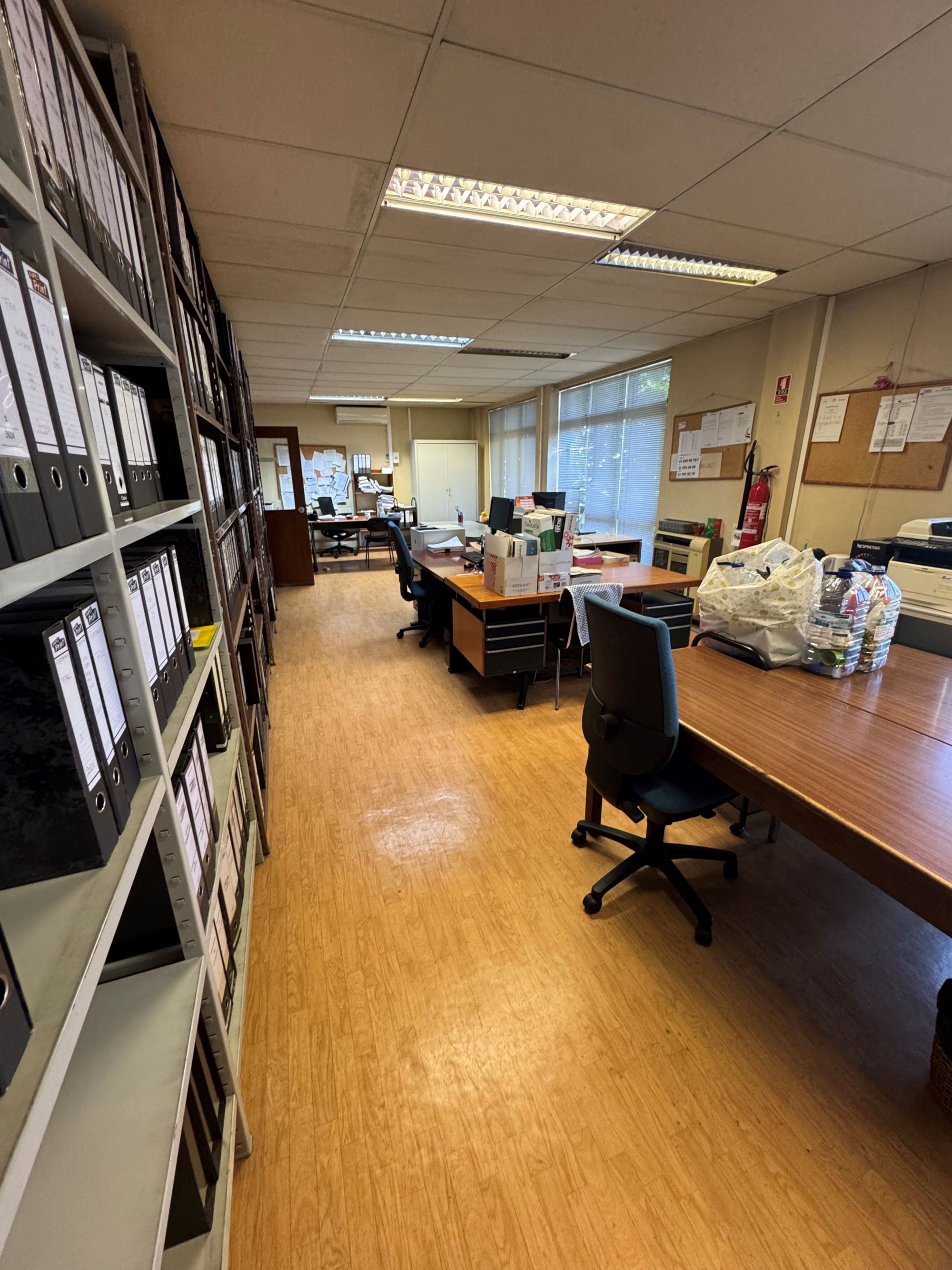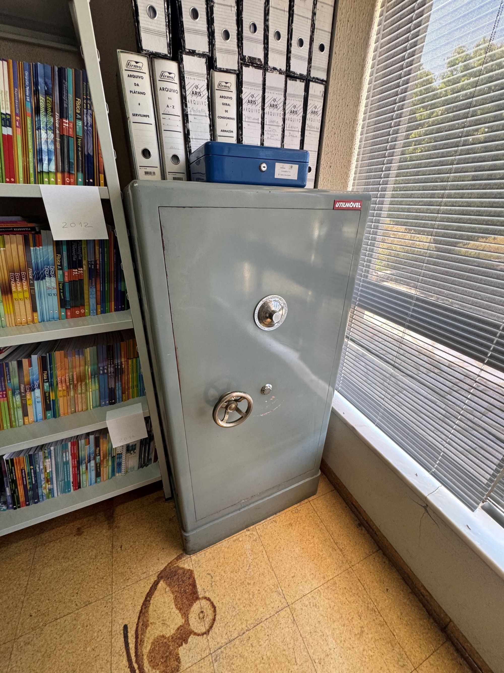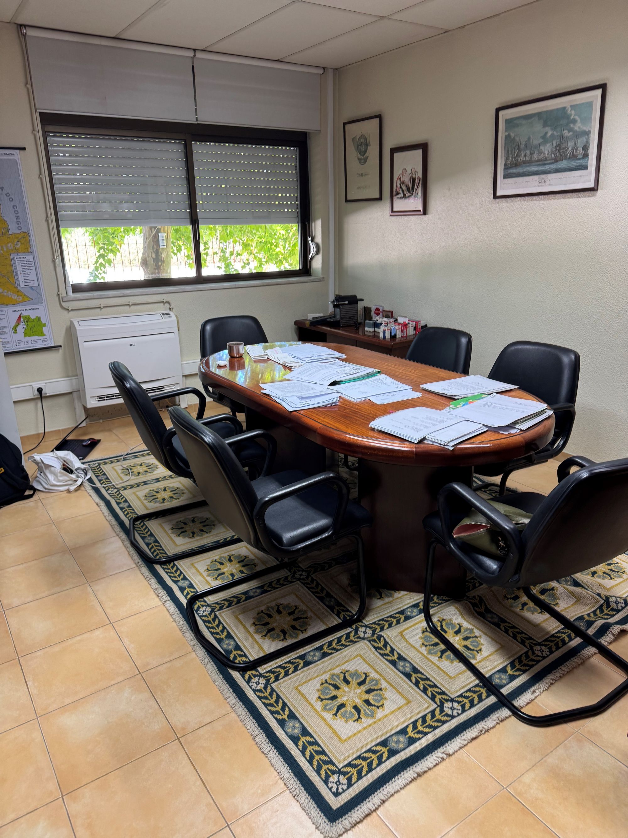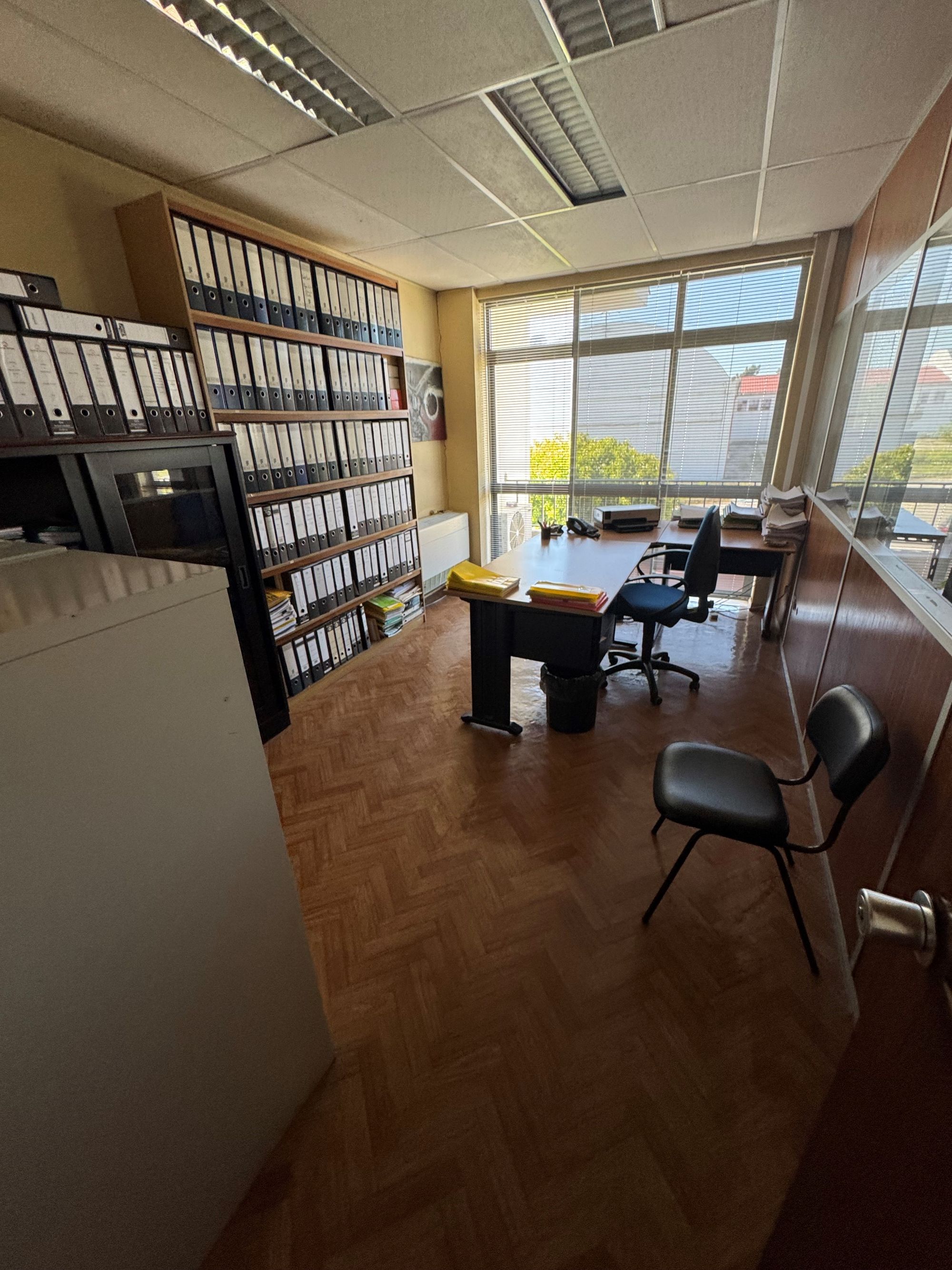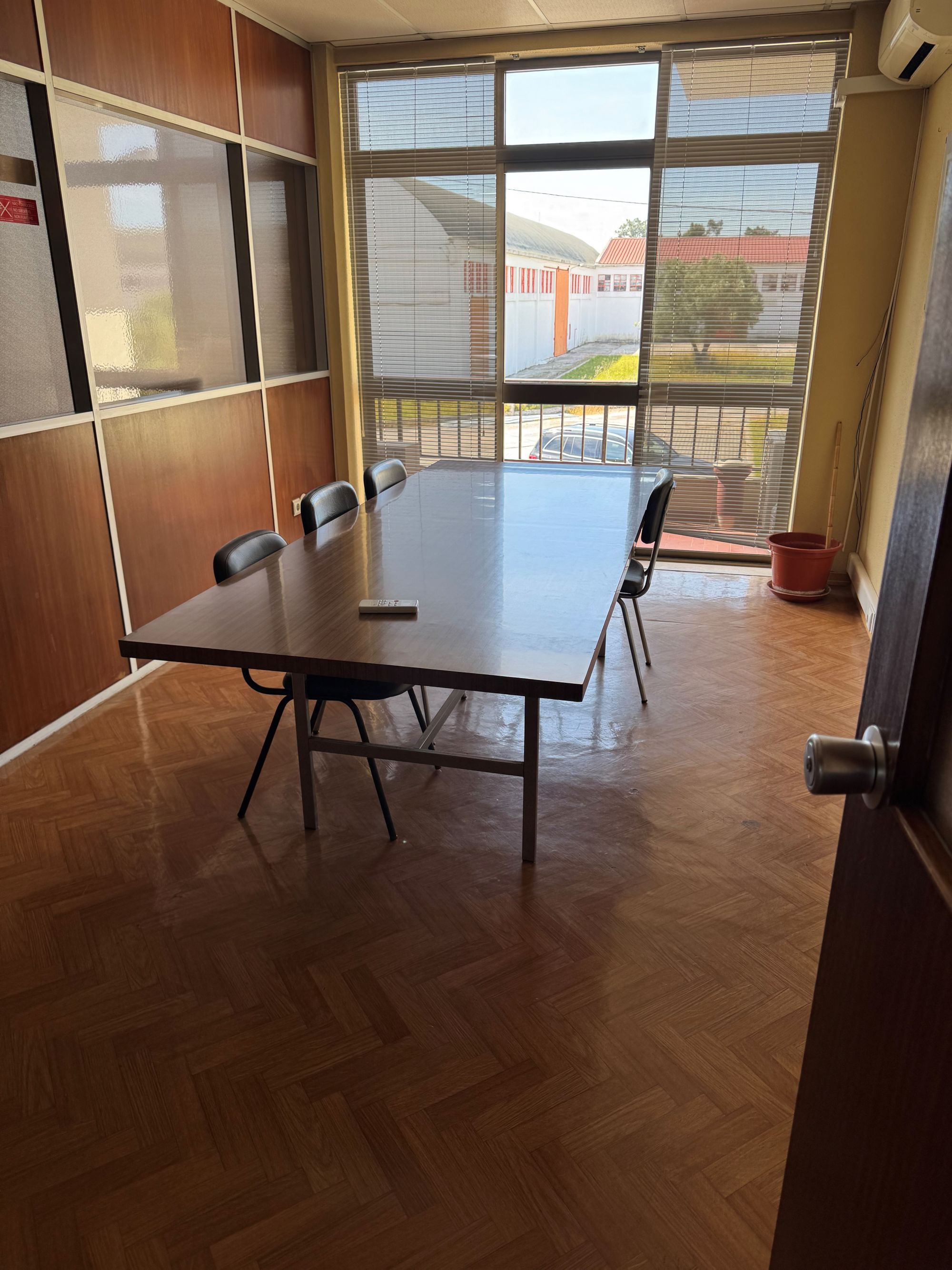 Escritório da administração: mesa redonda com 3 cadeiras, 2 estantes (uma delas de dimensão grande), dois armários e uma secretária com uma cadeira |