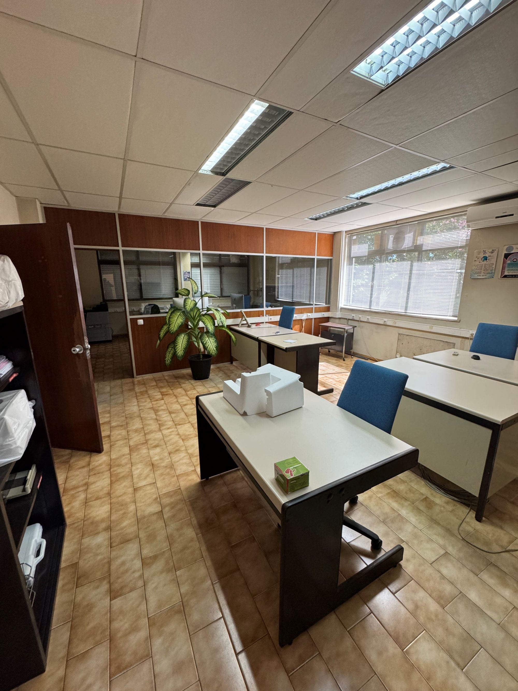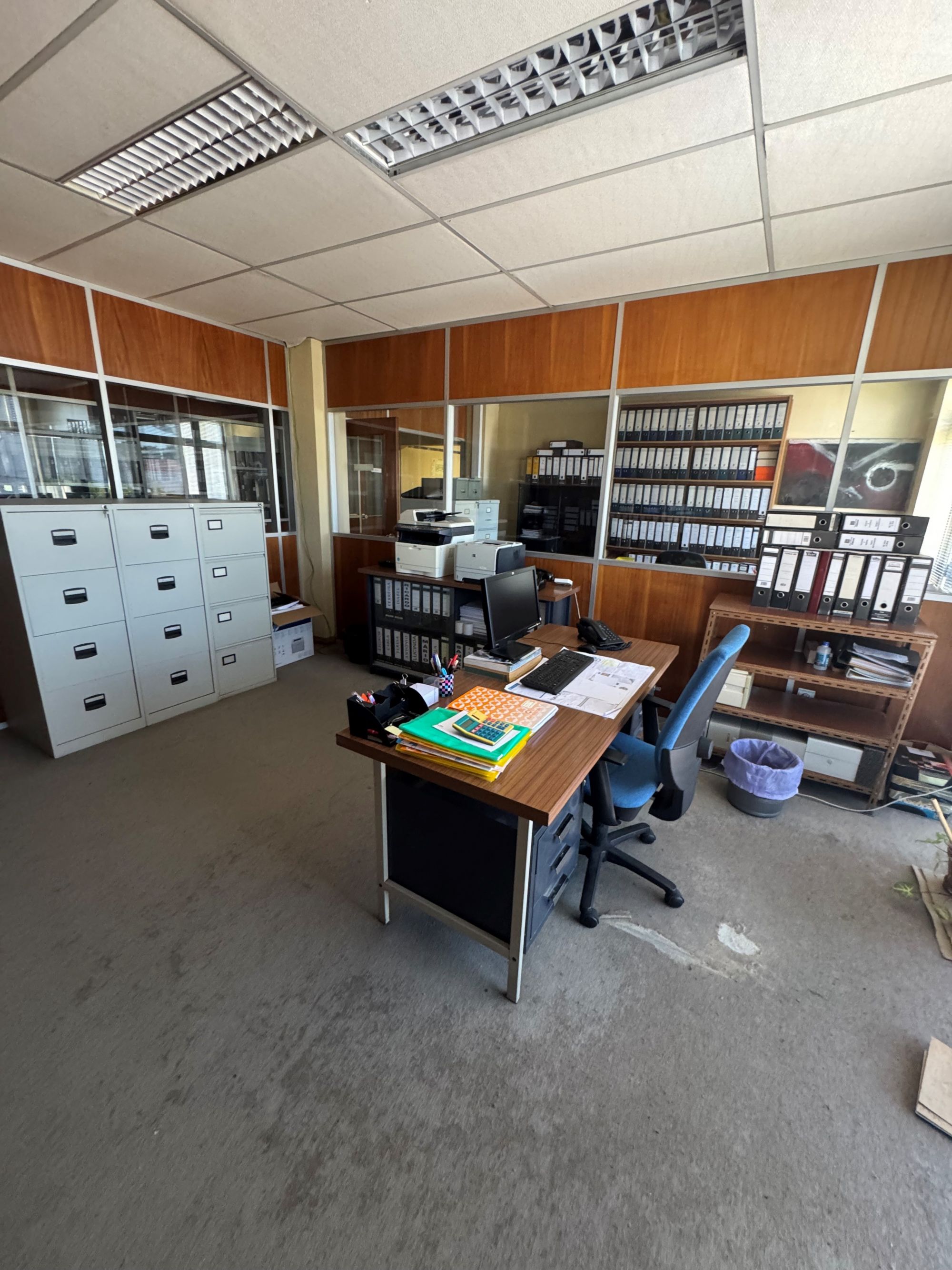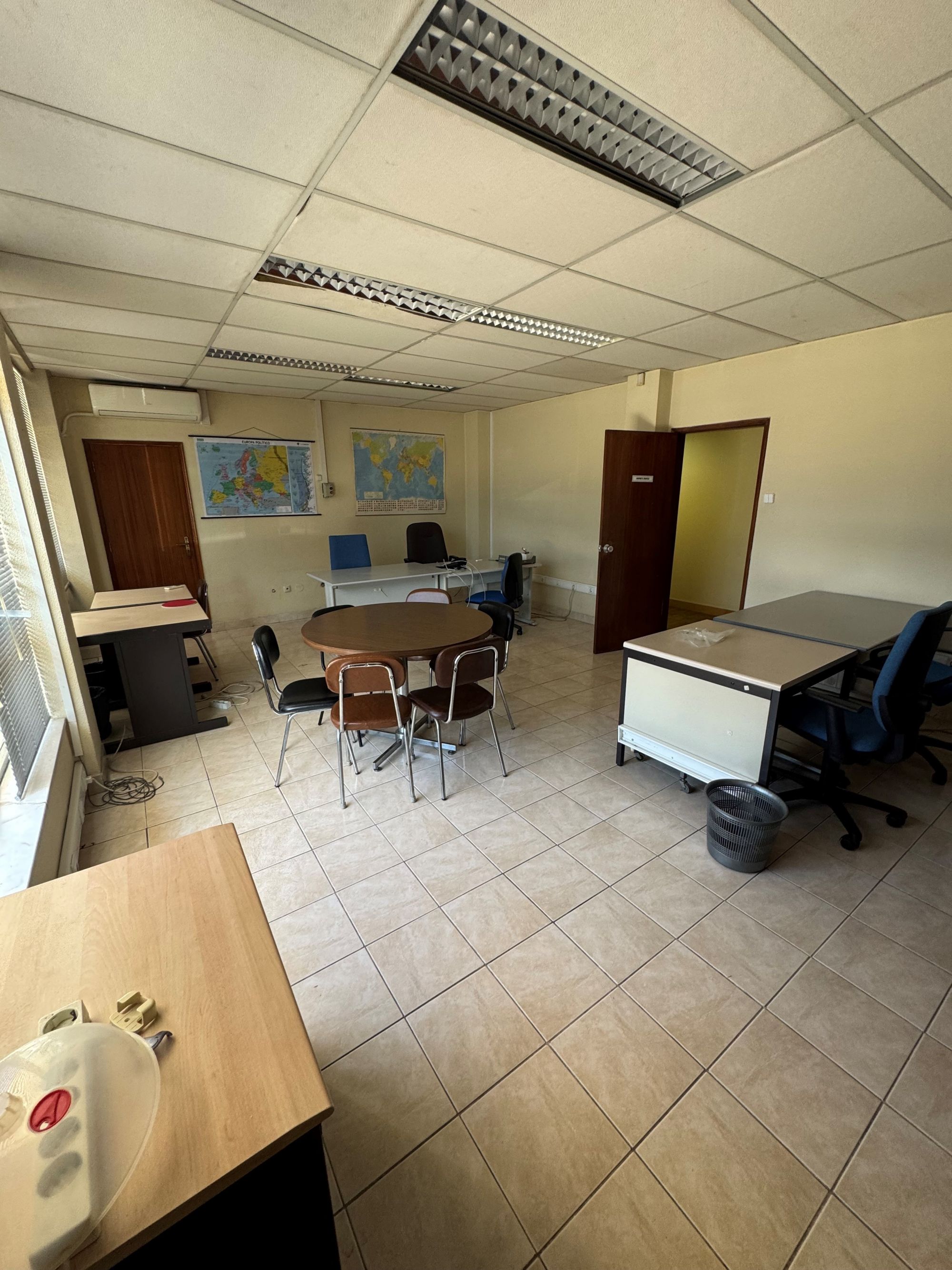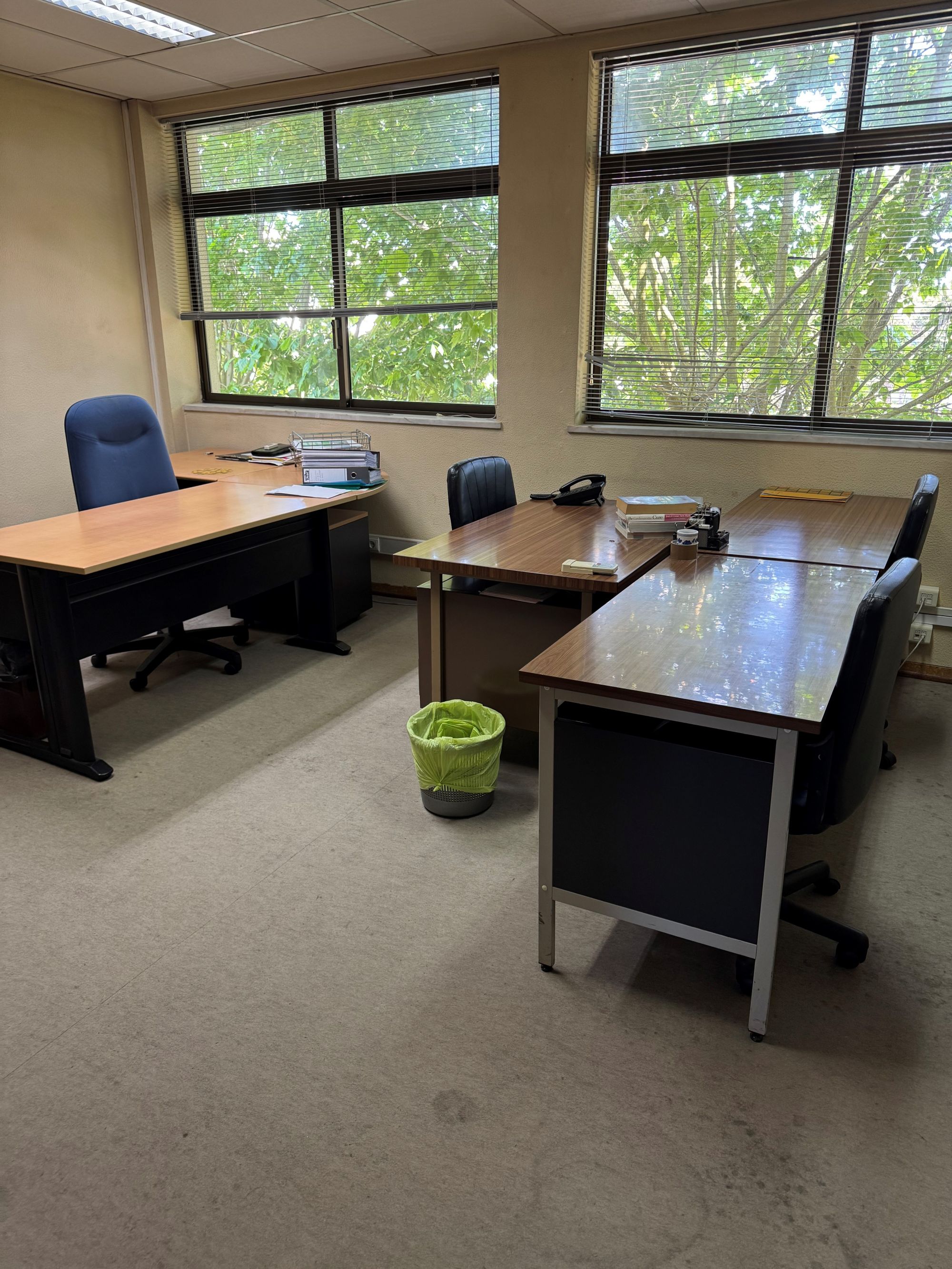 Escritório da administração: mesa redonda com 3 cadeiras, 2 estantes (uma delas de dimensão grande), dois armários e uma secretária com uma cadeira |